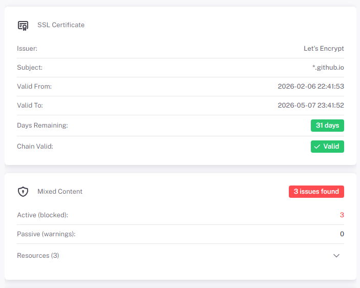 Ensure the certificate matches your domain. Catch misconfigurations after certificate renewals.